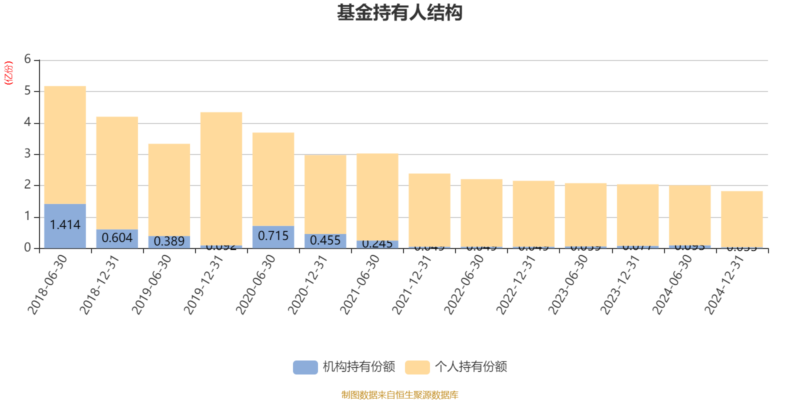 截至2024年12月31日,基金持有人共计2.12万户,合计持有1.82亿份。其中管理人员工持有13.13万份,占比0.07%,机构持有份额占比1.83%,个人投资者占比98.17%。