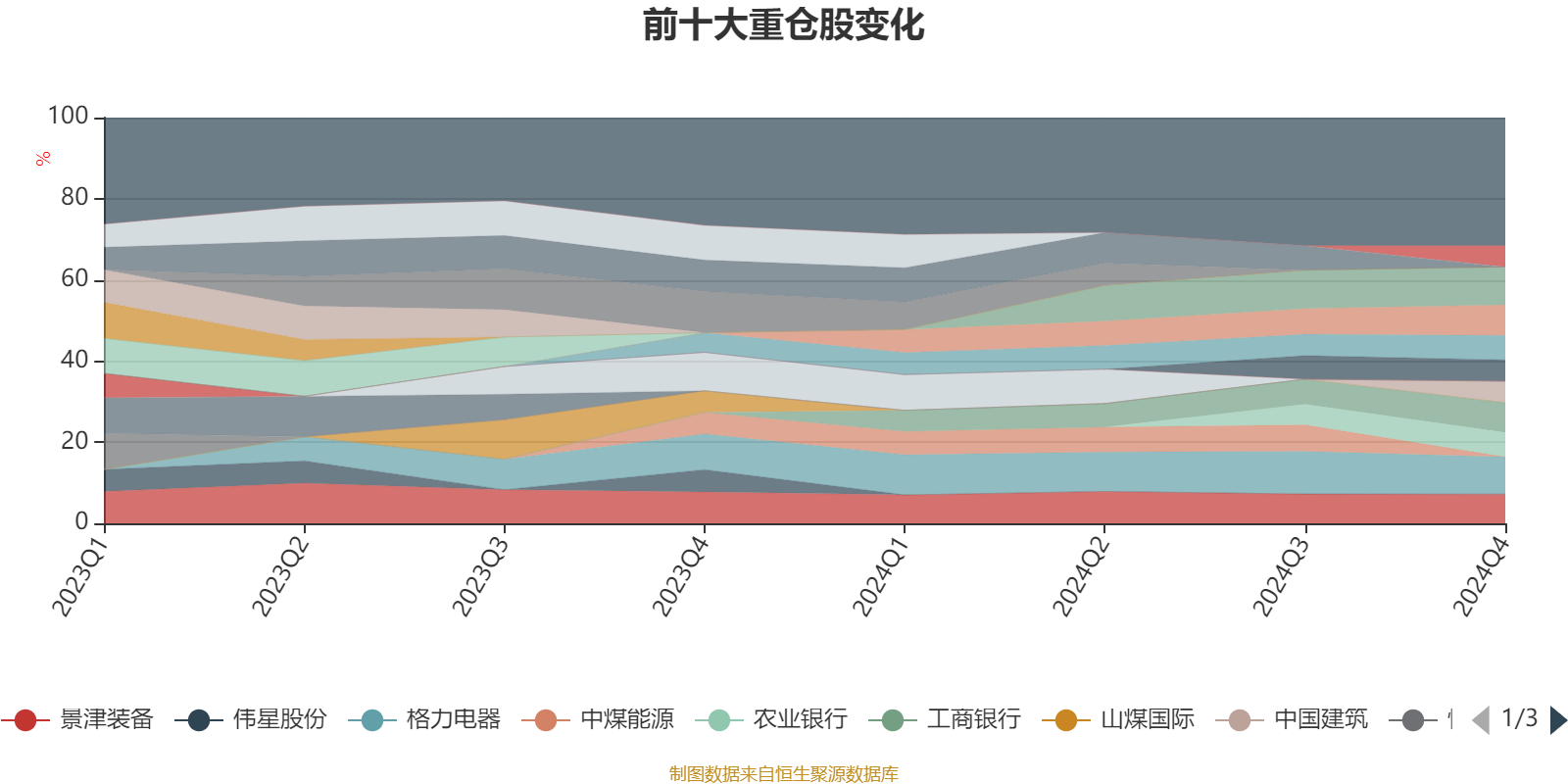 该基金持股集中度较高,近2年前十大重仓股集中度长期超过60%。截至2024年末,基金十大重仓股分别是招商银行、格力电器、渝农商行、工商银行、景津装备、农业银行、海螺水泥、中国建筑、淮北矿业、电投能源。