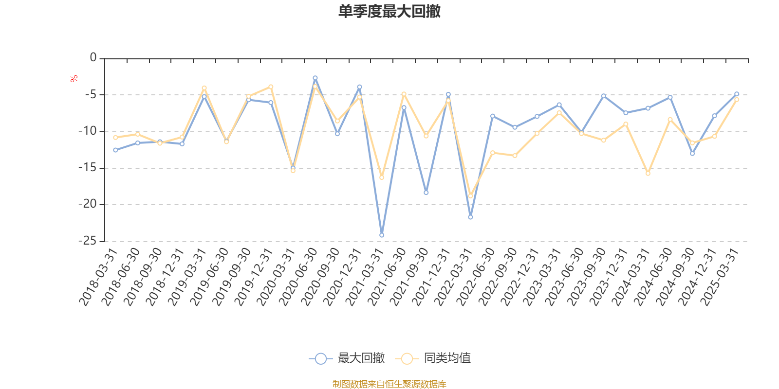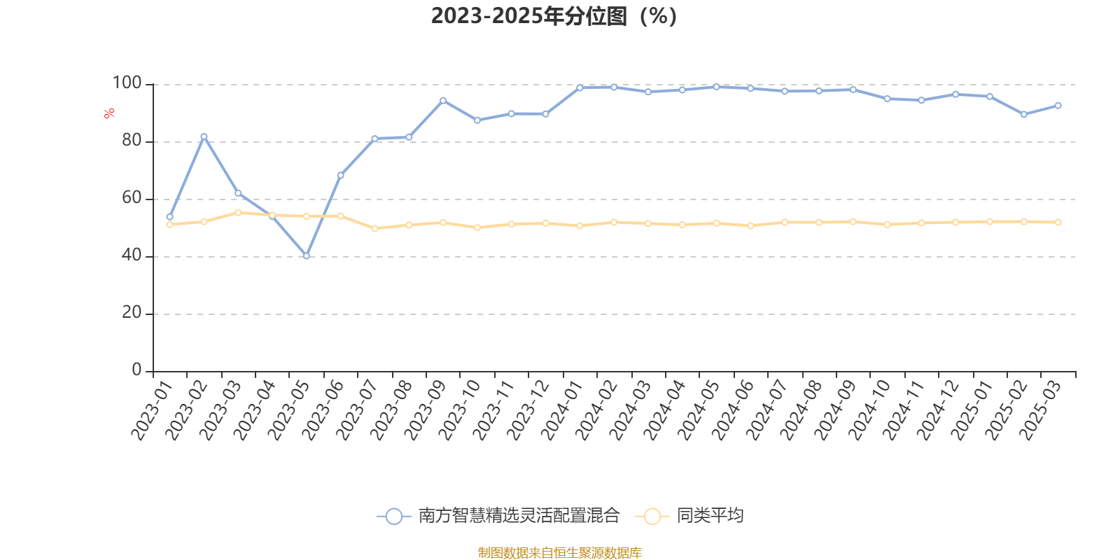 通过所选区间该基金净值增长率分位图,可以观察该基金与同类基金业绩比较情况。图为坐标原点到区间内某时点的净值增长率在同类基金中的分位数。
